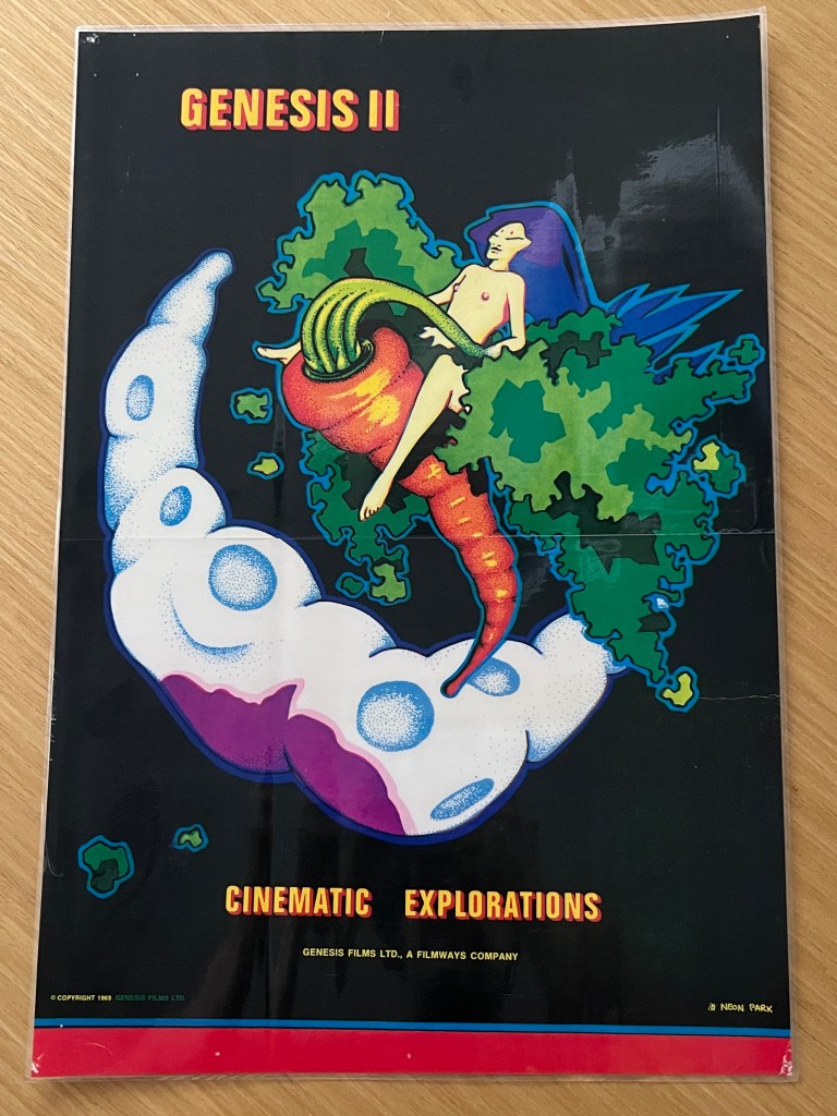 Filmmakers Burton Gershfield and Pat O’Neill both worked for Genesis (Burton on a more full-time basis for a couple of years, Pat more casually), and along with Martin Muller (aka Neon Park) and sometimes Bruce Lane, also comprised a sort of in-house design outfit for Genesis, called Illuminator. They produced intro/conclusion sequences for the touring programs, as well as program handout design, etc., but O’Neill and Muller eventually turned this into their own separate outfit, doing visual effects, design, etc.