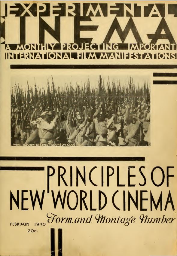 It seems reasonably possible that — at least in English — the term originates with and was somewhat popularized and codified by Lewis Jacobs, who published a monthly magazine with Seymour Stern and other contributors called Experimental Cinema between 1930 and 1934, although the magazine didn’t cover what we normally think of today as “experimental film”. Subtitled “a monthly projecting important international film manifestations”, in its five published issues the magazine focused on what would be more accurately considered radical/political/art cinema from an anti-capitalist, politically activist, leftist perspective, with special attention paid to the work of Soviet filmmakers. According to the magazine itself, “Experimental Cinema, founded in 1930, represents the pioneer attempt to establish a film art in America. Its appearance has inspired the formation of innumerable film groups, film societies, film forums, etc., whose policies it has influenced. This magazine, with its tireless educational activities, is largely responsible for the growth of the new film movement in the United States today.”