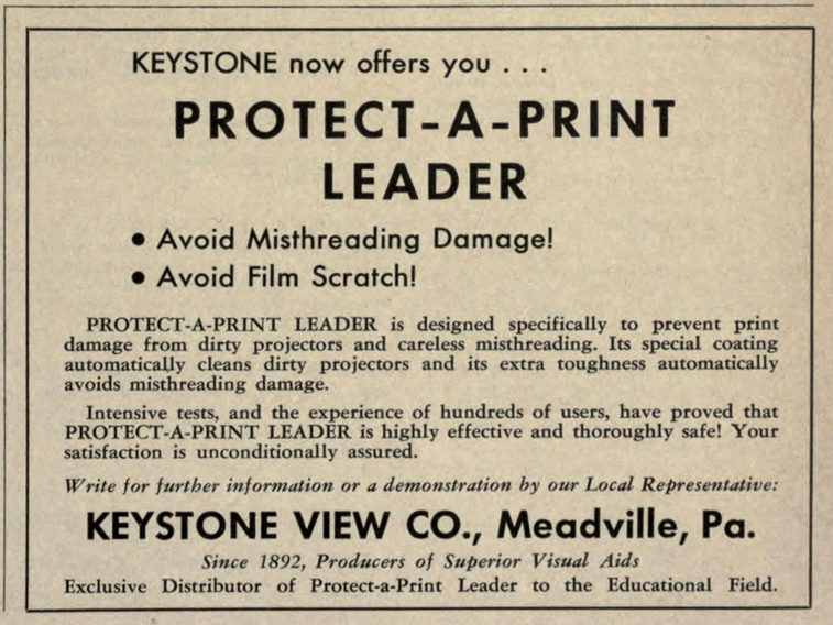 In a quick search thanks to the Internet Archive, an early ad I encountered for Protect-a-Print appears in 1961 issues of Educational Screen and Audiovisual Guide: