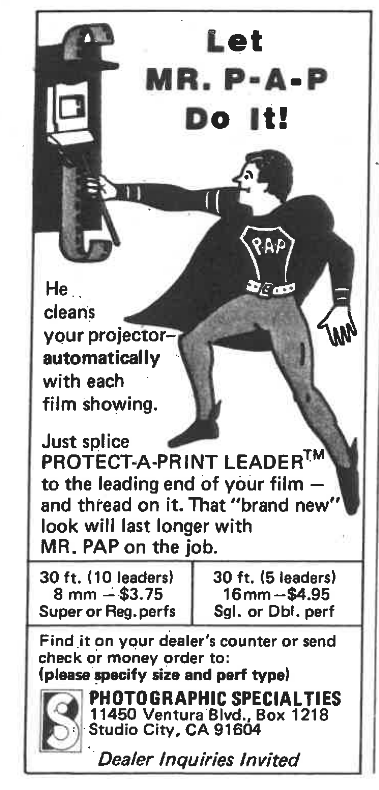 And here’s a kookier ad for it from a 1979 issue of Super-8 Filmaker (that spelling always irks me!) magazine: