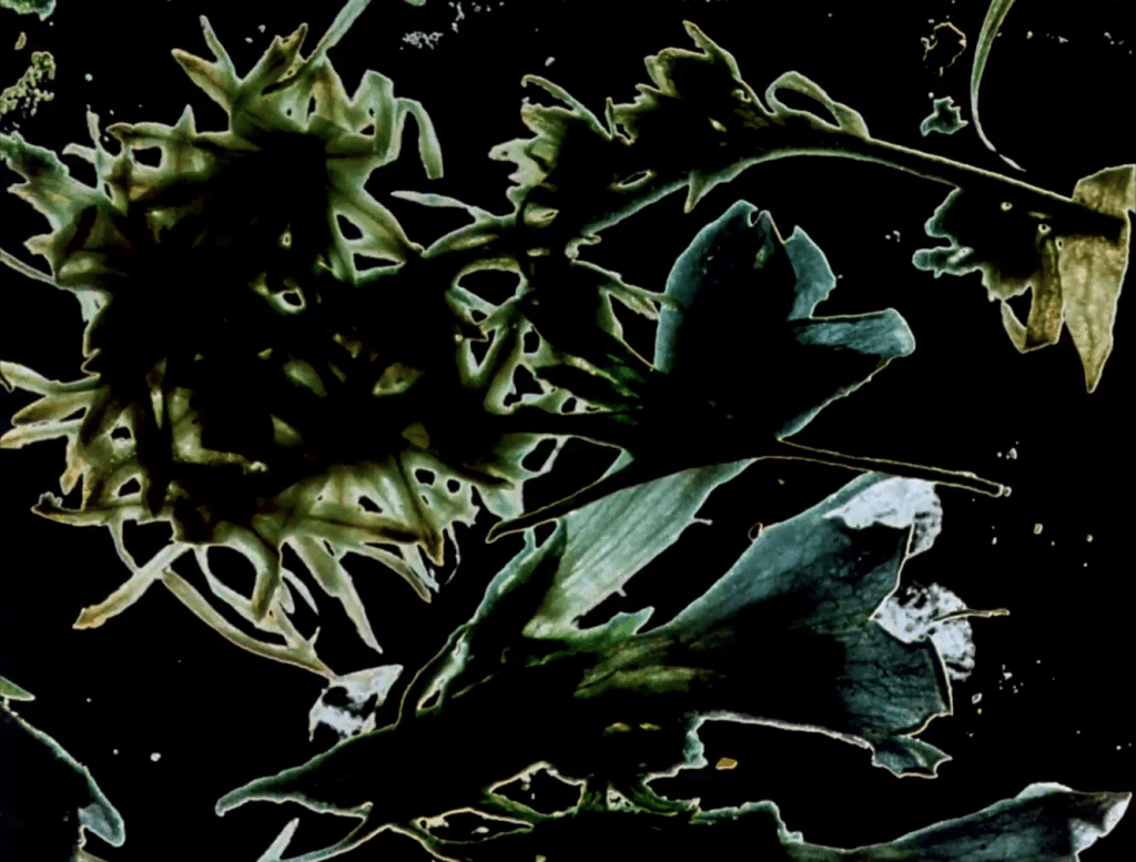 Putting the main and end titles aside, the film essentially comprises two batches of material – the “Night Blooming” material and the “Garden” material. Besides the editorial manipulations as described above, the “Night Blooming” material in particular underwent additional optical manipulation in the form of bi-pack printing to create its unique nocturnal quality. To describe further how the film was made, I’ll talk about each section separately.