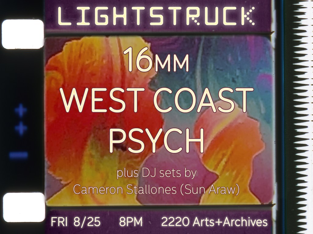 Program by Zena Grey and Mark Toscano. Notes by Mark Toscano. Poster art by Robert Beatty. All films courtesy of the artists and Canyon Cinema. Prints of Dog Star Man: Part 4 and 7362 courtesy of the Academy Film Archive.