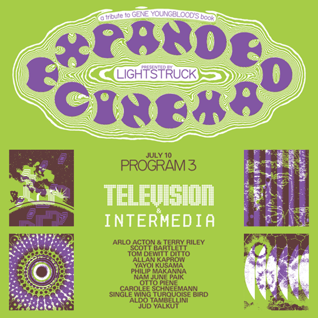 In our second program focusing on Gene Youngblood’s 1970 book Expanded Cinema, Lightstruck will focus on artists who – through their visionary use of incredible machines both homemade and hi-tech – produced works that sought to extend and externalize human consciousness in a cinematic form uniting mind, heart, spirit, and soul. Youngblood was fascinated by the ambitious and artful employment of technology in motion pictures in the 1960s, and saw both the humble DIY innovations and the massive mainframes alike as potential conduits for enhanced human engagement, and an evolutionary stepping-stone for multi-sensorial exploration.